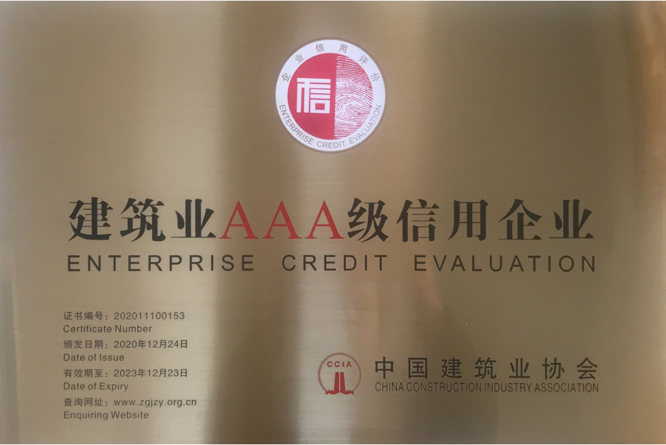 2021年年初之際,經過相關行業協會推薦、專家組初審、中國建筑企業協會終審的2020年度全國建筑業AAA級信用企業結果揭曉,福建省泉州市第一建設公司被授予“2020年度全國建筑AAA級信用企業”稱號。