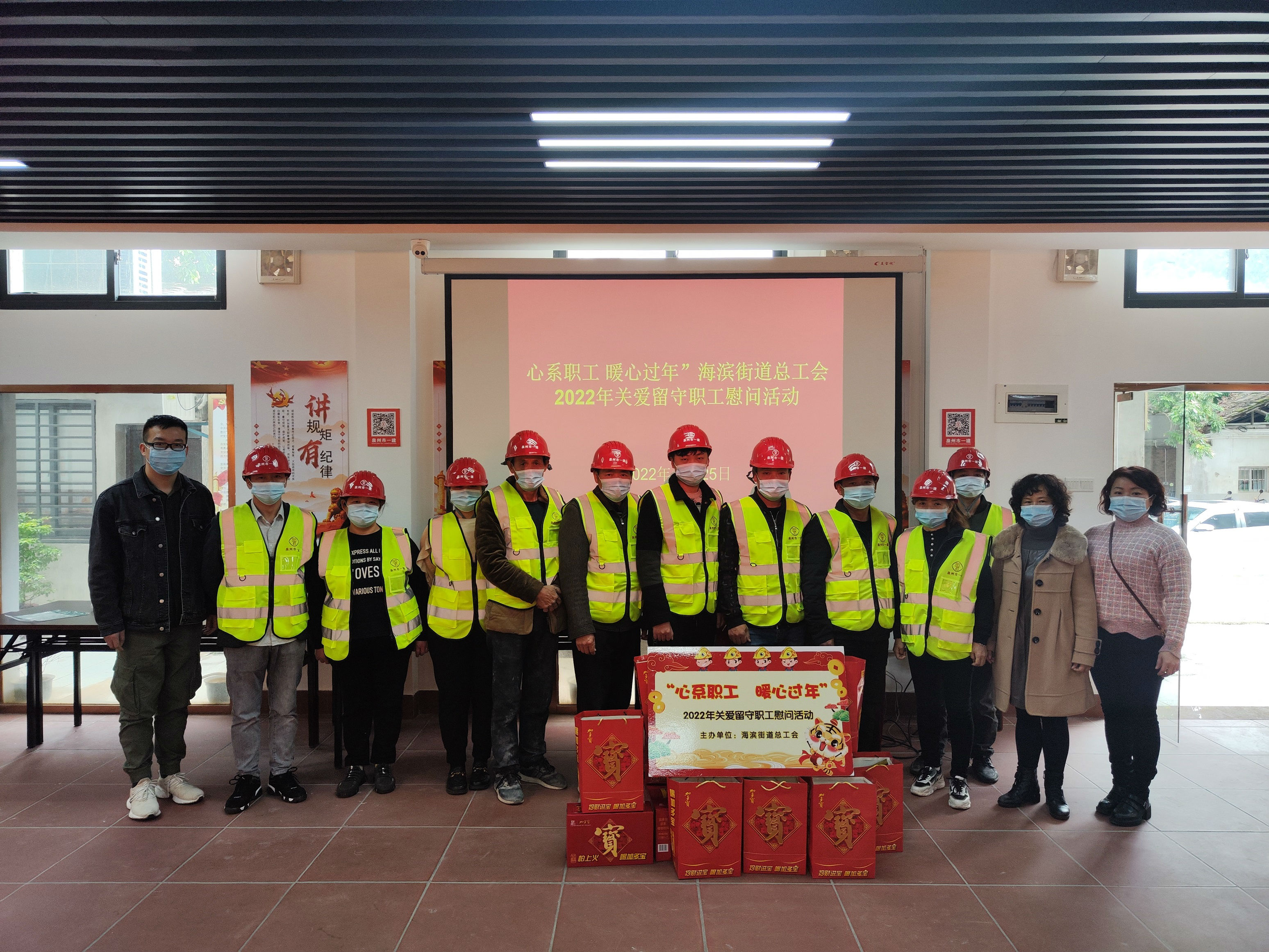 2022-04-28 11:49心系職工 暖心過年——海濱街道總工會組織慰問我司春節留守職工為響應國家疫情防控號召,提倡就地過春節,鼓勵省外來鯉務工人員留鯉過年,春節前夕,福建省泉州市第一建設有限公司聯合所在地海濱街道辦事處,開展“心系職工 暖心過年”2022年關愛留守職工慰問活動。活動中,海濱街道工會和泉州市一建工會相關領導走訪慰問了泉州市一建節日留鯉過年的工作人員,為他們送上春節祝福,感謝他們為鯉城經濟社會發展作出查看詳情 -