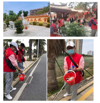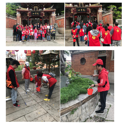 此次我們的志愿服務采用“游學參觀+環境保潔+史跡宣傳”的形式展開活動。志愿者們分別來到了真武廟、江口碼頭(文興碼頭、美山碼頭),以及美山天妃宮這三個站點。